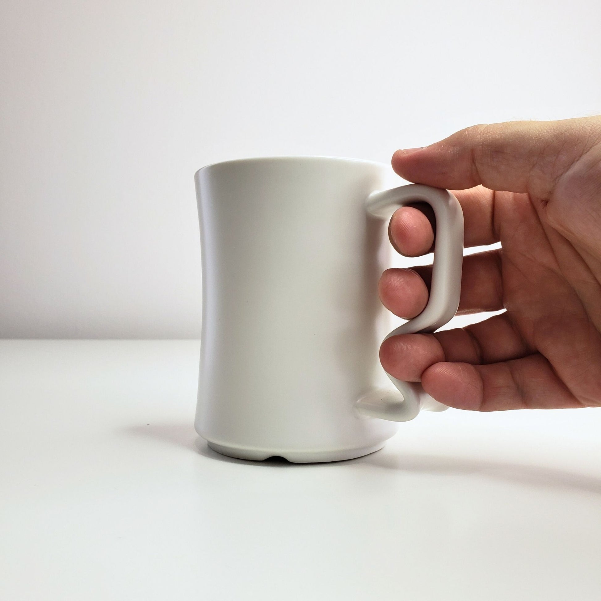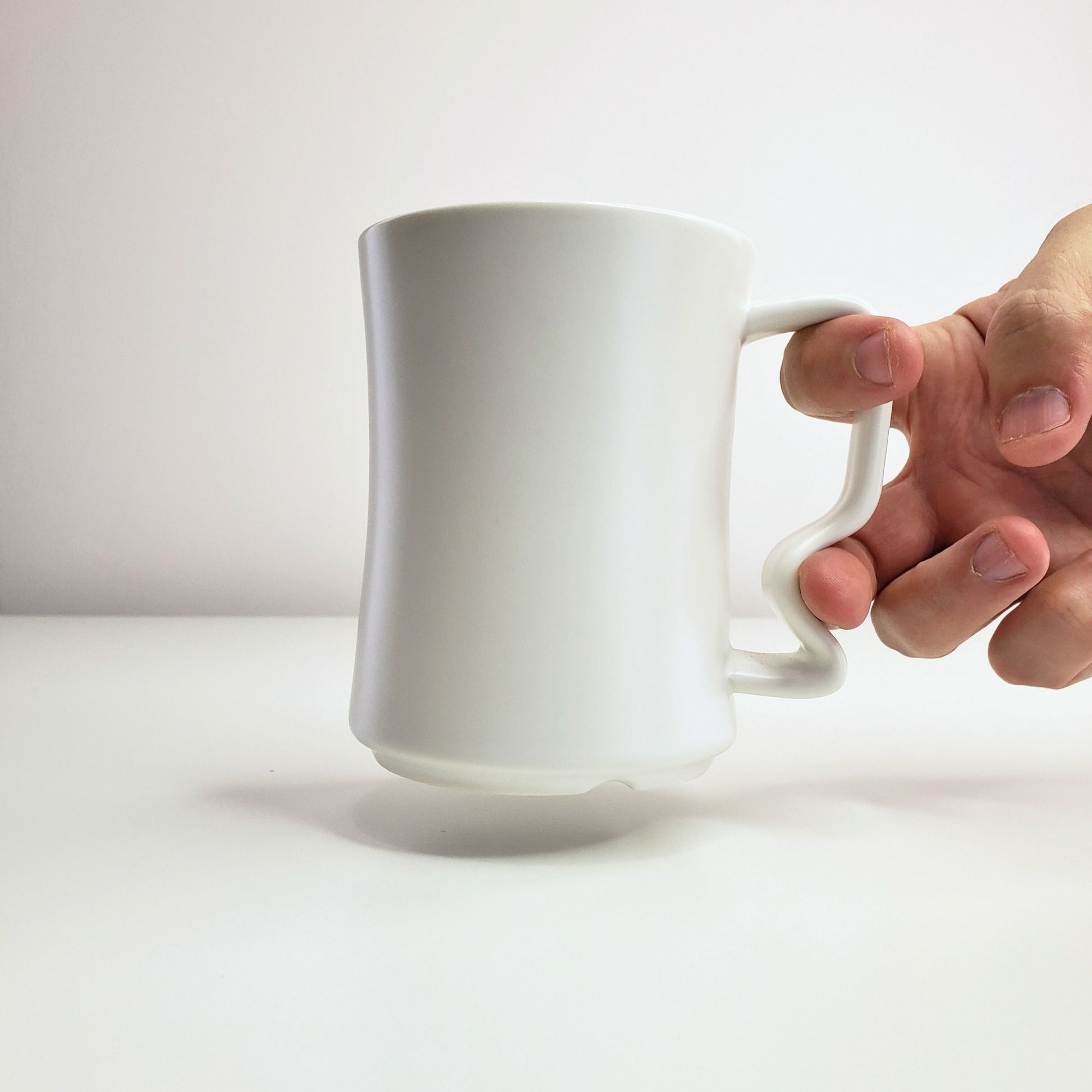 The handle and mug body give you a better grip based on physics and ergonomics. The result is a comfy grip that doesn't slip, prevents burns, and avoids pain points.