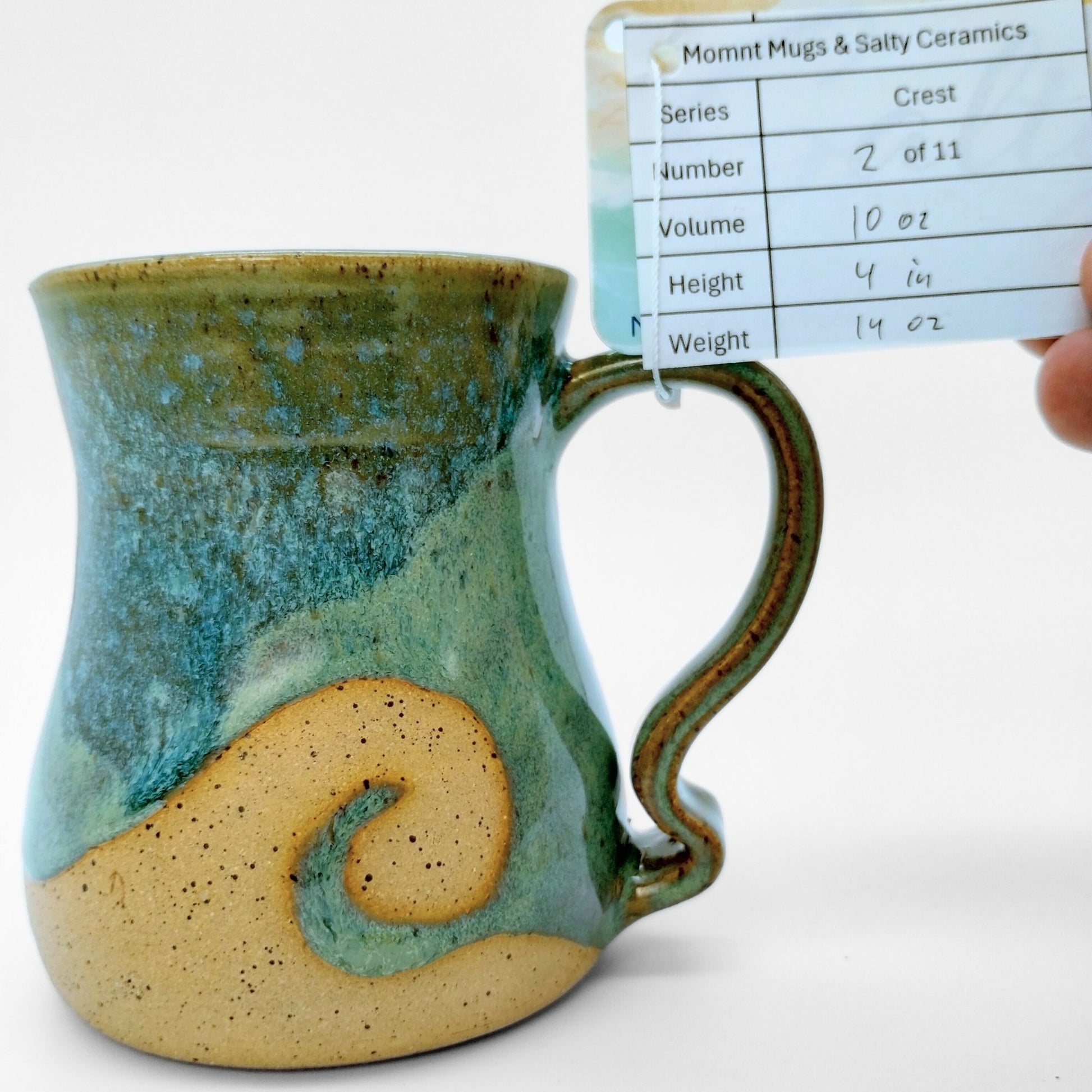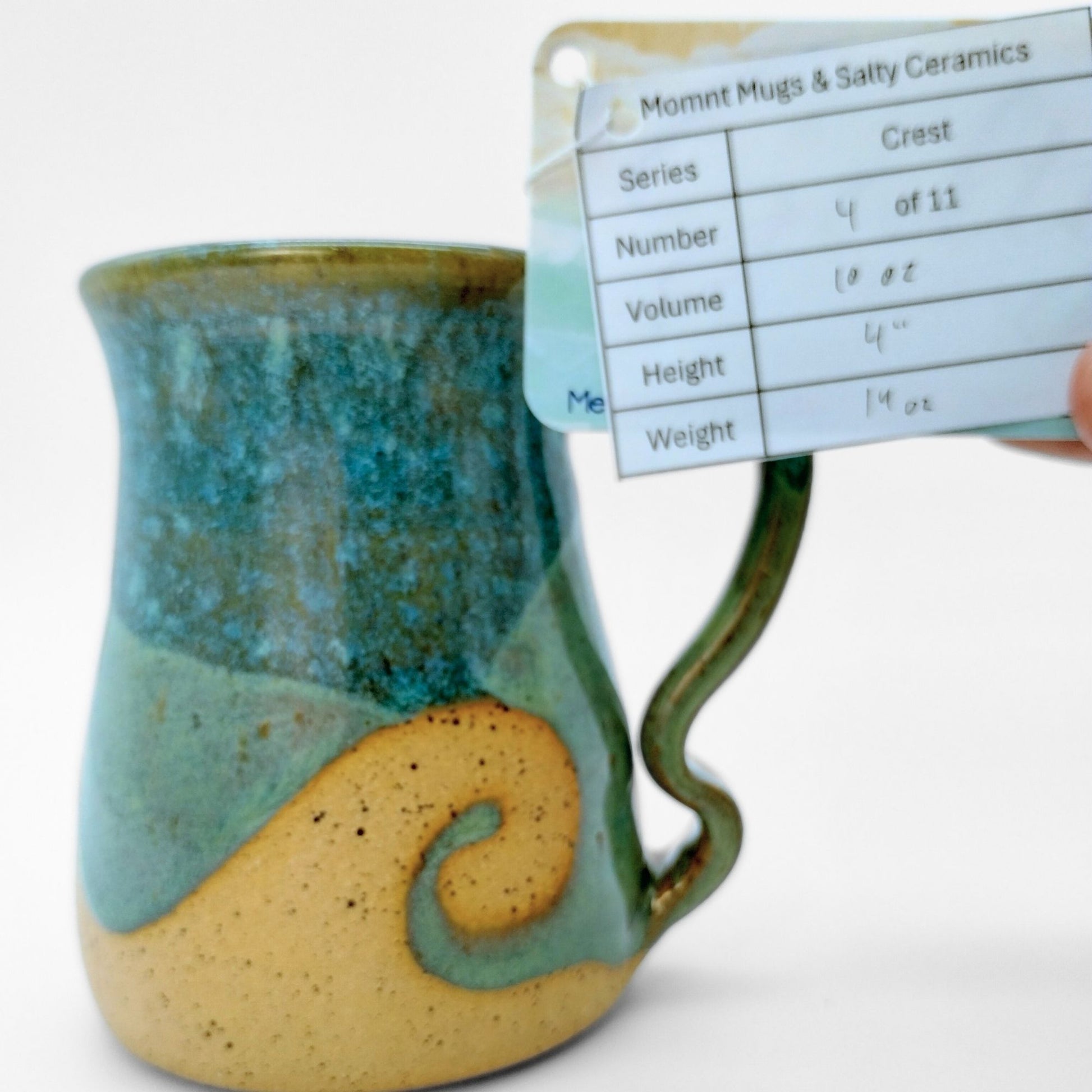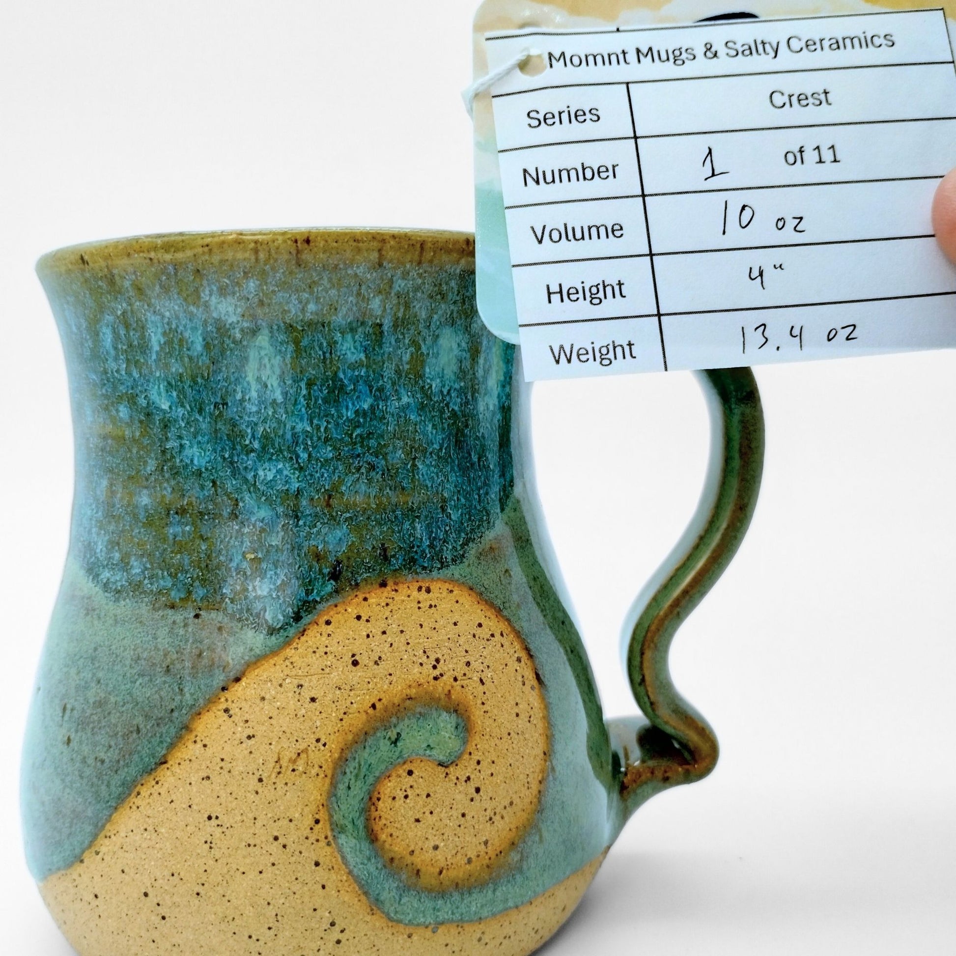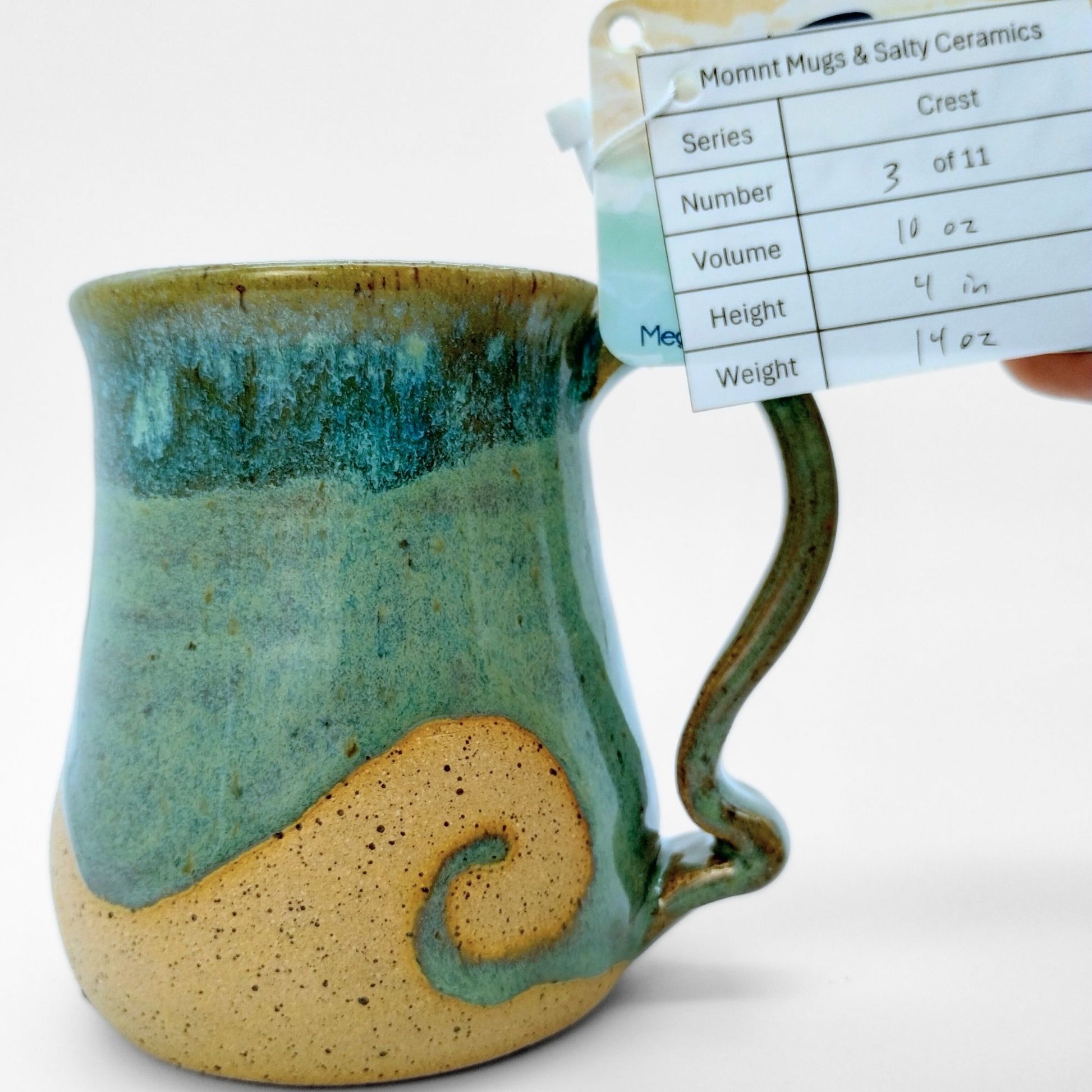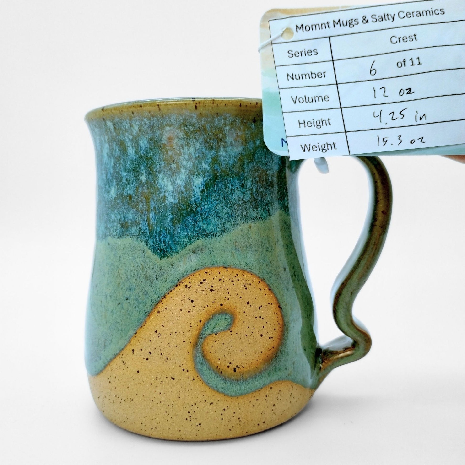 We worked with Meghan at Salty Ceramics in Wilmington, NC. Each mug incorporates her style glazes and mug bodies with our style handle, making them true collaborations. These mugs showcase her wax resist glazing method, which lets her create the wave patterns in the glazes.