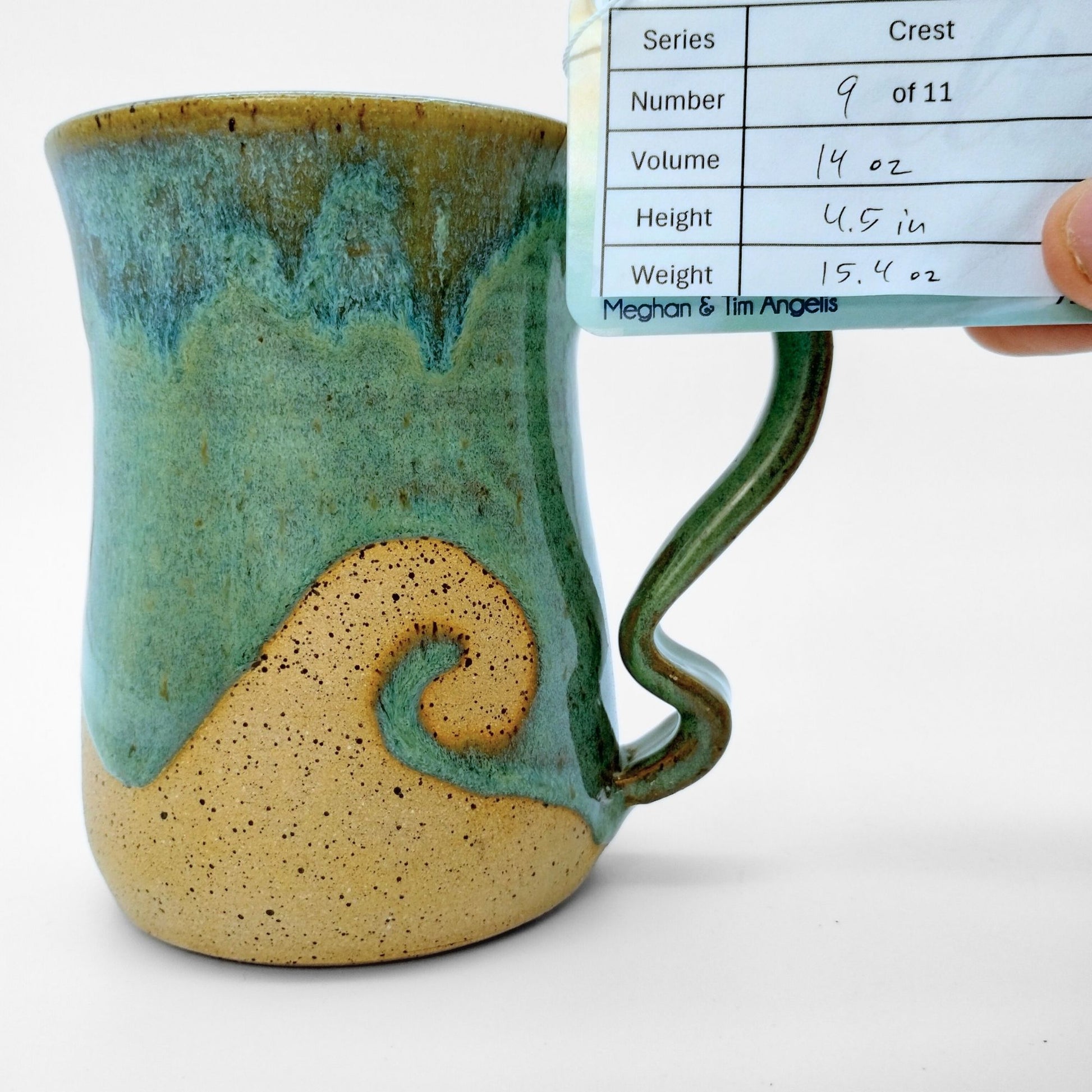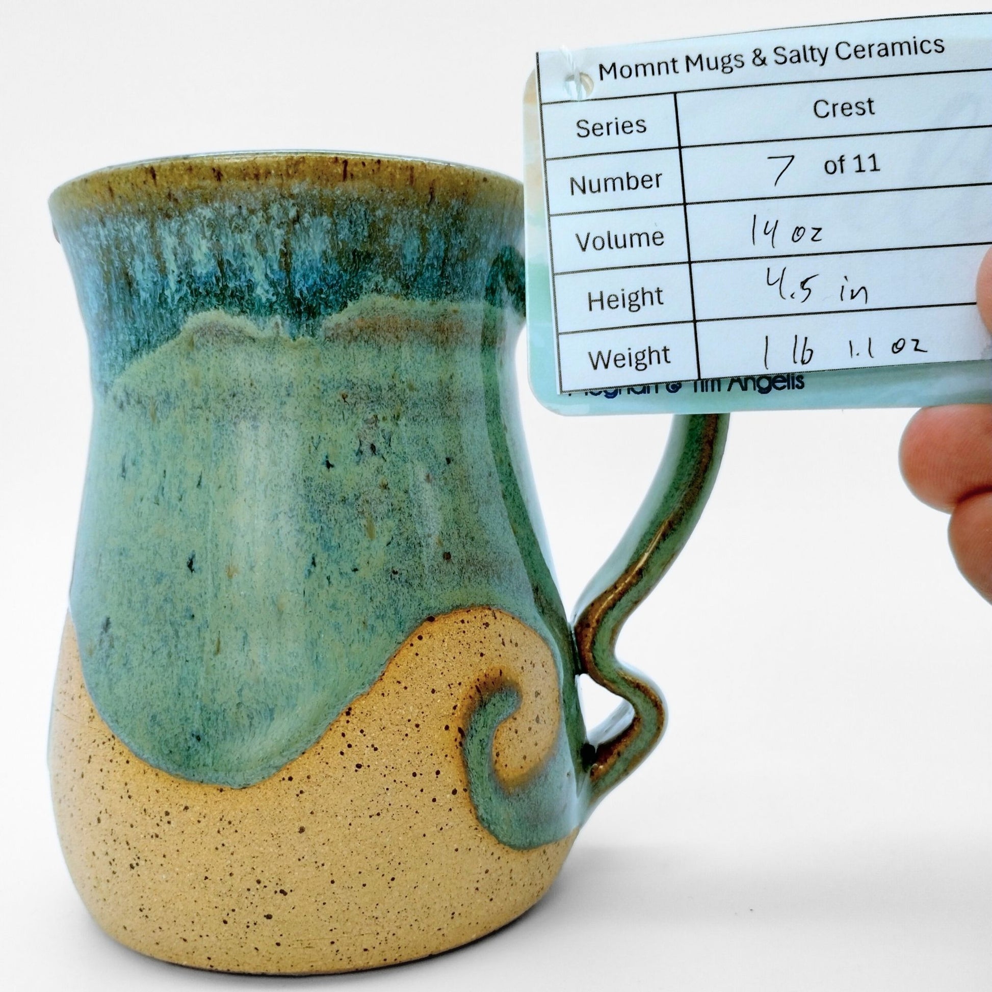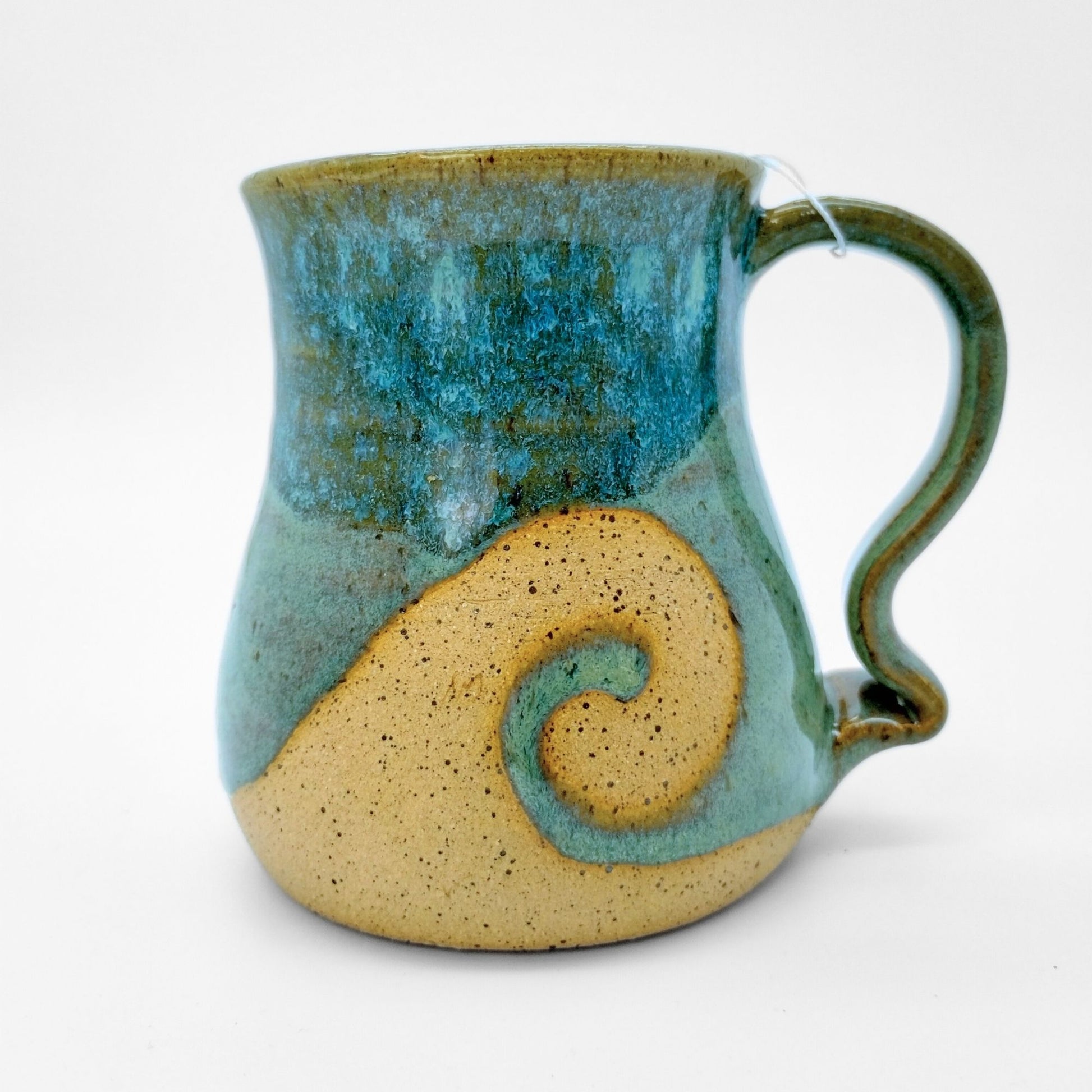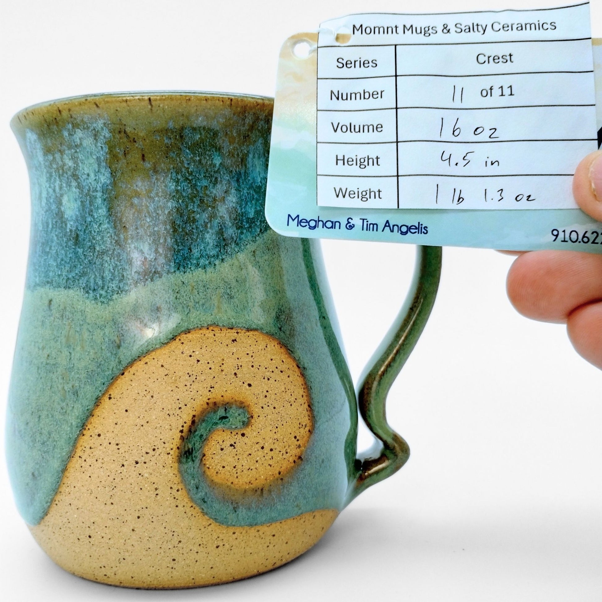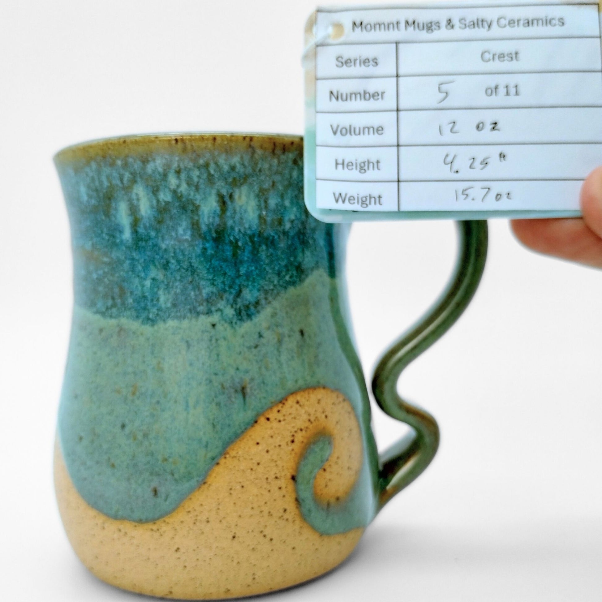 We worked with Meghan at Salty Ceramics in Wilmington, NC. Each mug incorporates her style glazes and mug bodies with our style handle, making them true collaborations. These mugs showcase her wax resist glazing method, which lets her create the wave patterns in the glazes.