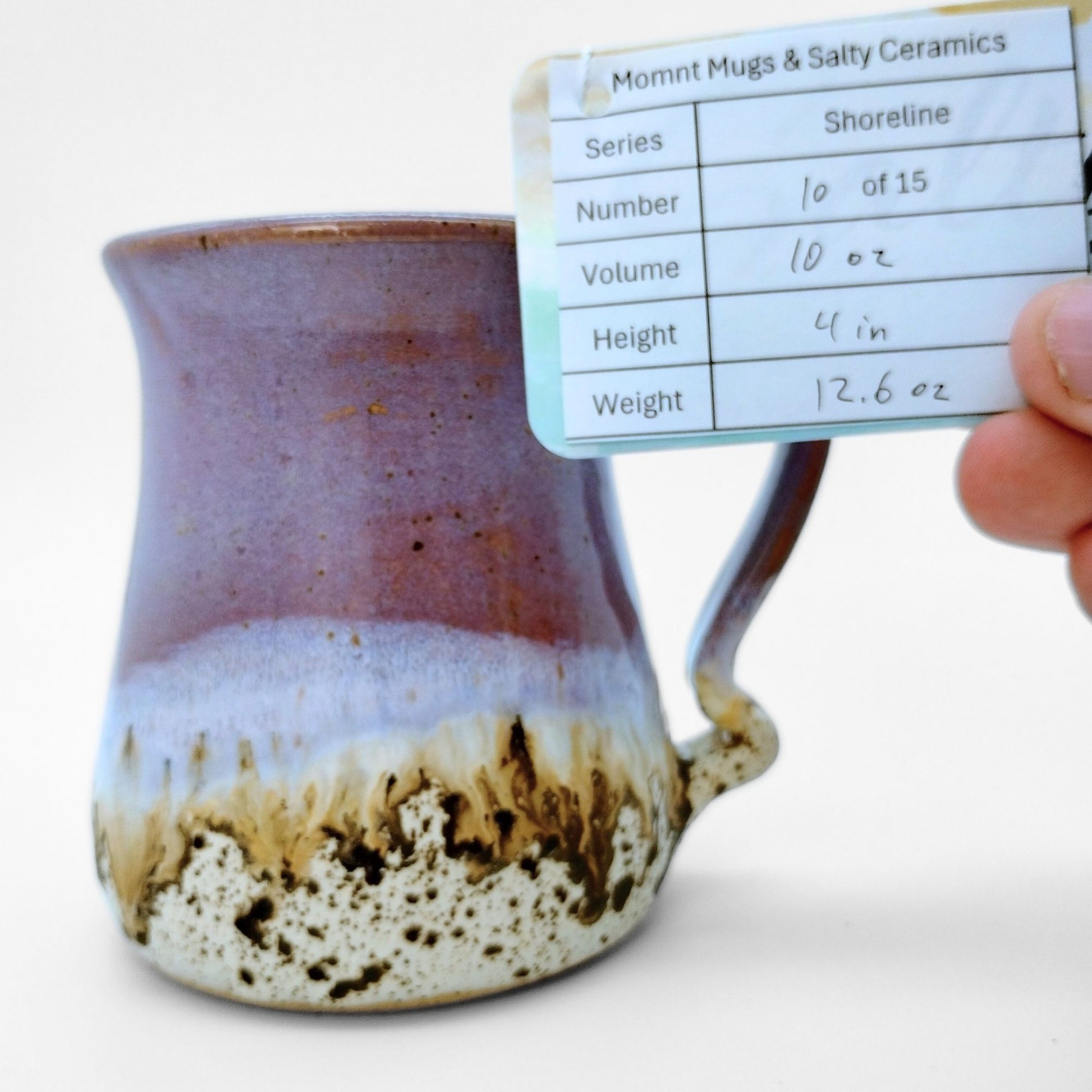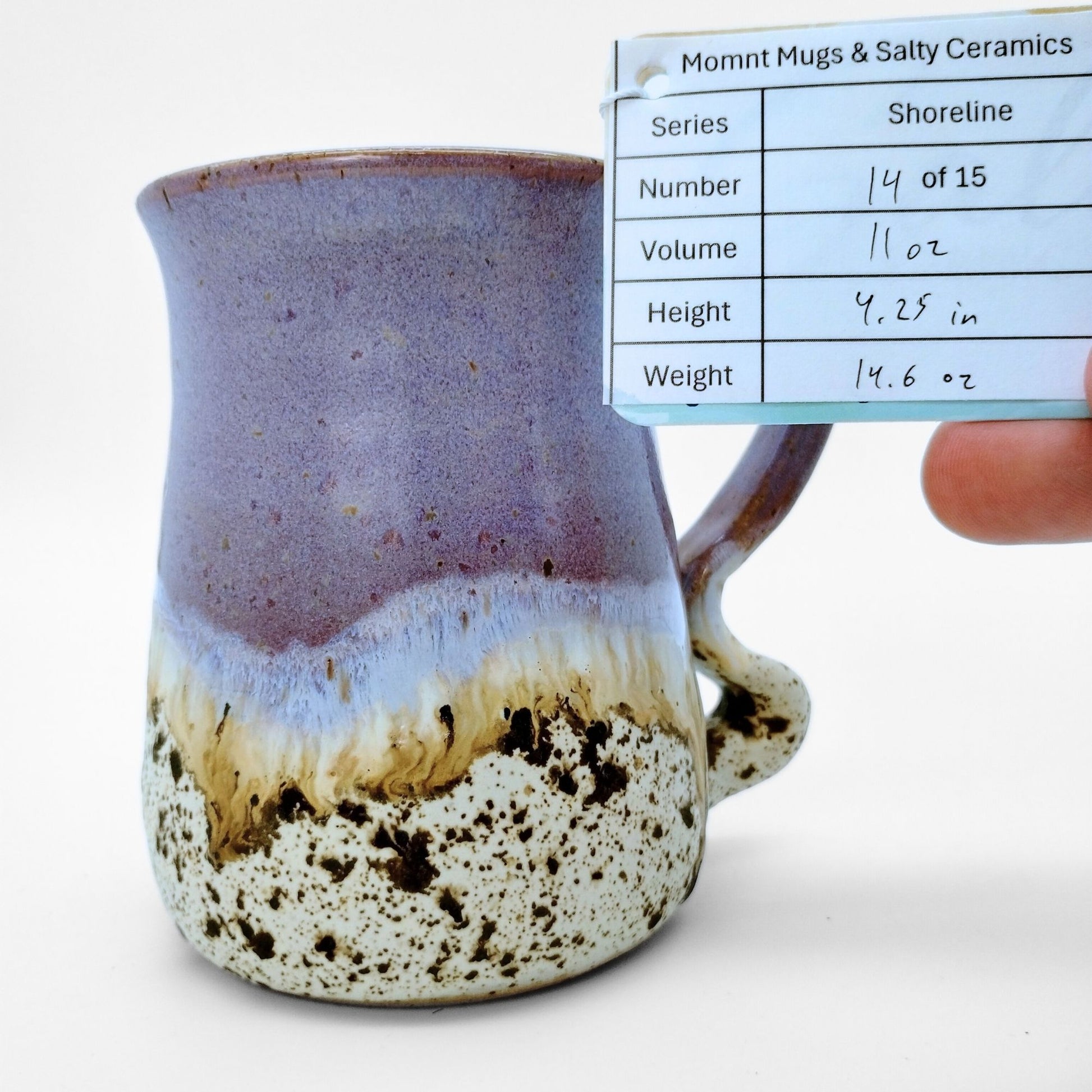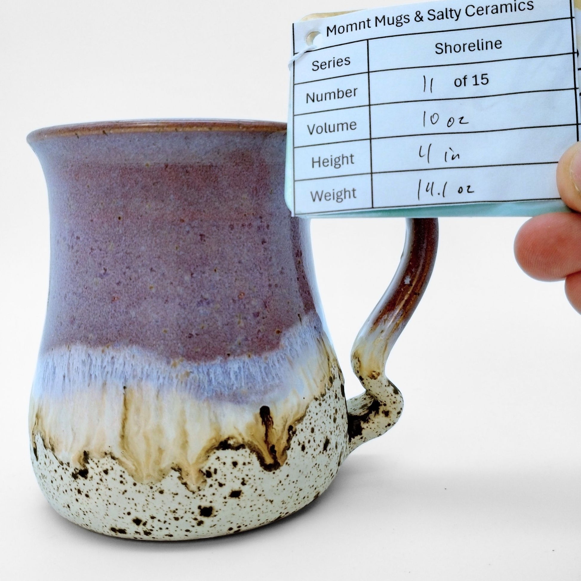 One look will tell you why we called this our Shoreline Series. As you sip your morning coffee, your mug will remind you of ocean colors of blue or lavender transtioning to breaking waves of white and ultimately speckled white sandy beaches.