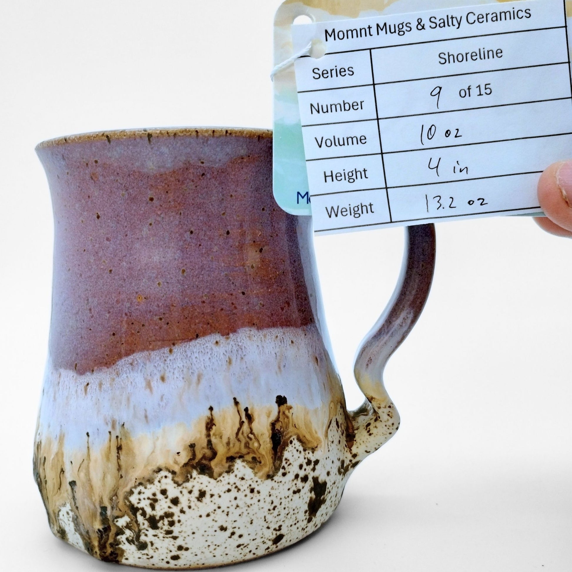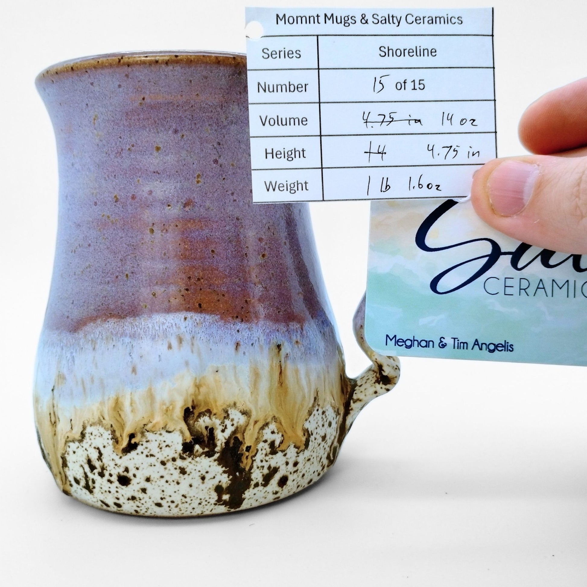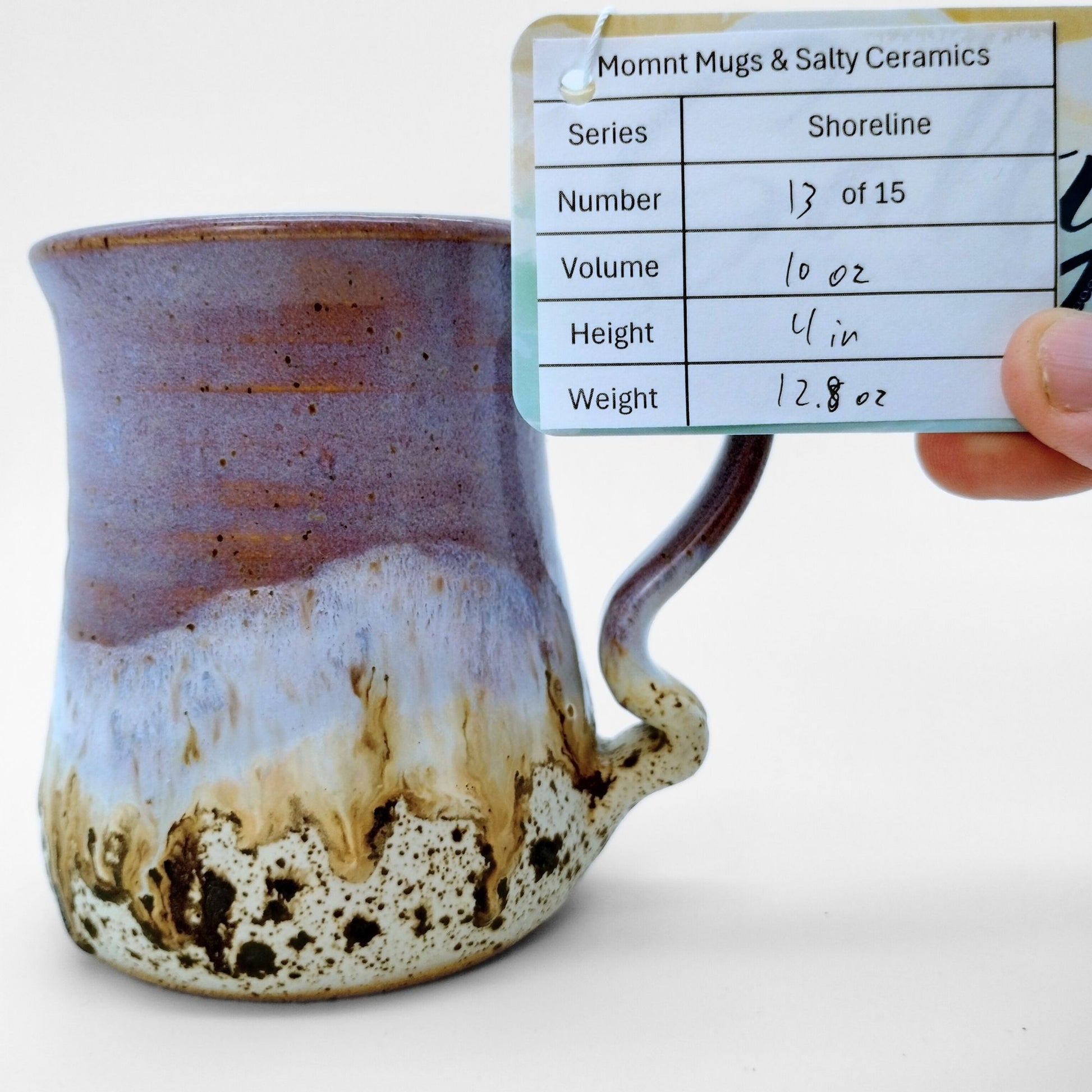 One look will tell you why we called this our Shoreline Series. As you sip your morning coffee, your mug will remind you of ocean colors of blue or lavender transtioning to breaking waves of white and ultimately speckled white sandy beaches.